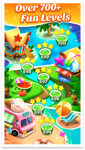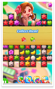 "I love the relaxing tropical vibe of this game! The puzzles are challenging but not overwhelming, which makes it so much fun to play. I got stuck on level 25 because of the cascading candies, but I managed to clear it after a few tries. Great game for winding down!"