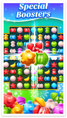 Special power-ups like Coconut Bombs and Pineapple Explosions make every match exciting, while the rewarding progression system ensures a satisfying experience